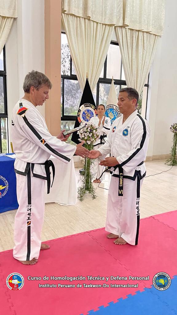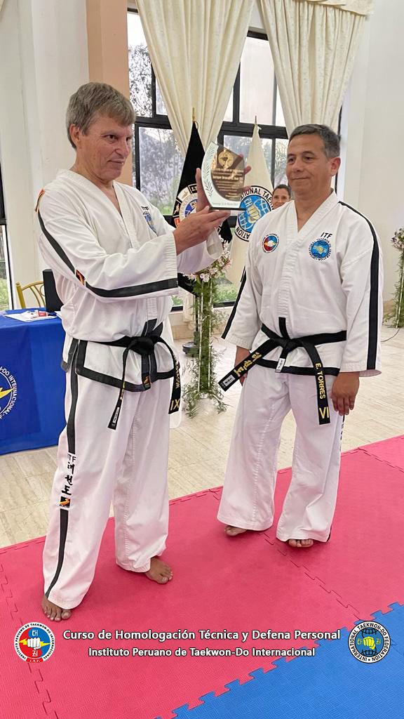 El Instituto Peruano de Taekwon-Do Internacional, otorga este reconocimiento al GM Enrique Deacon IX Dan ITF, en agradecimeinto por sus enseñanzas en el Curso de Homologación Técnica y Defensa Personal.